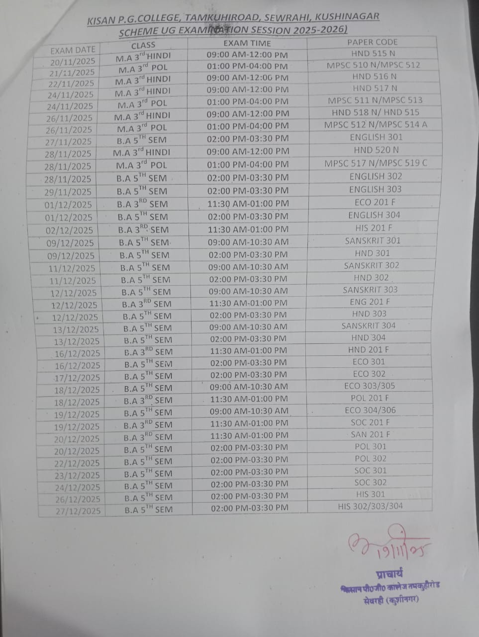विषम सेमेस्टर ए. म. तृतीय तथा बी. ए. तृतीय एवं पंचम सेमेस्टर की परीक्षा -सारणी दिनांक 19/11/2025